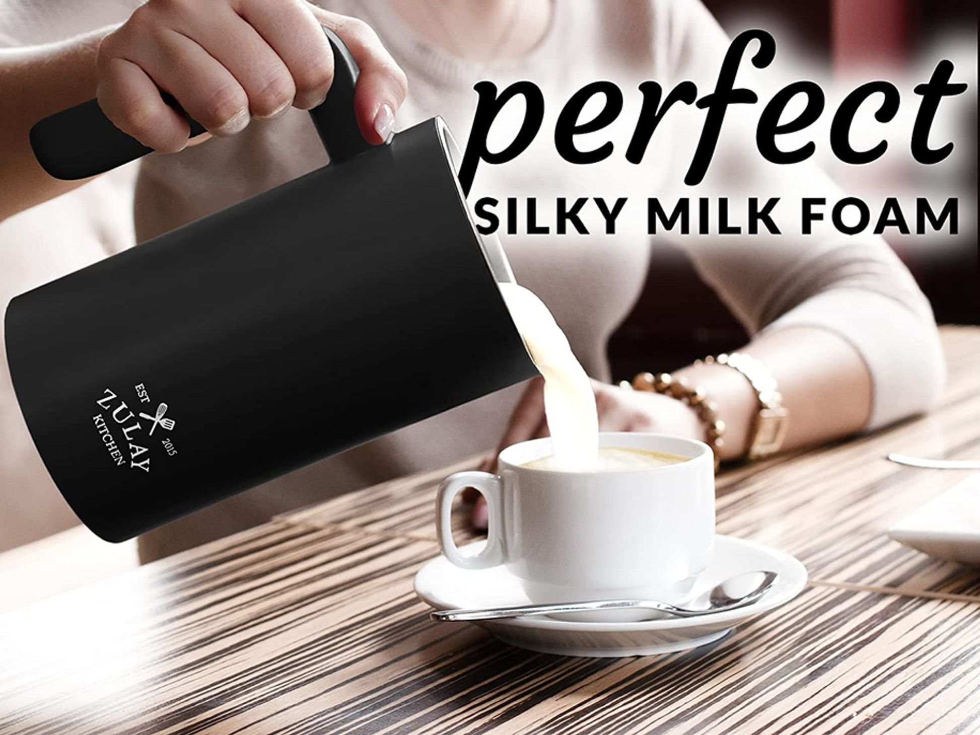 FROTHS & HEATS MILK IN ONE GO Whip up your creamer or milk into a silky velvety concoction in the comfort of your home with Zulay Kitchen Automatic Milk Frother and Heater. Constructed with BPA Free stainless steel rust-resistant interior; the exterior provides an elegant and modern aesthetic look for your kitchen coffee corner. The lid is made of shatterproof Tritan material that is see-through - allowing you to see your wonderful froth creation. 4 FROTHING FUNCTIONS Features a one-button control with four settings: warm and thick milk froth warm and thin milk froth hot milk with minimum froth and cold froth. Perfect for any type of espresso-based drinks matcha latte hot cocoa chocolate milk cappuccinos almond milk and more! It has a 150ml capacity for milk frothing and 300ml capacity for milk warming. QUICK & QUIET FROTHING Start your day right by making delicious latte and cappuccinos with a home milk frother that operates quietly when heating or frothing milk for you to enjoy all in two minutes or less. Constructed with a non-stick layered coating interior. Includes a stainless steel whisk that rotates effortlessly giving you a consistently rich froth every time. EASY TO CLEAN & MAINTAIN To clean carefully fill the milk frother and steamer under a faucet and make sure that no water runs down the side to get near the electrical components underneath. If there is any remaining milk residue you can wipe it off with a moist towel and then it'll be ready for another frothing! Froths & Heats Milk In One Go bull; Whips up creamer or milk into a silky & velvety concoction bull; BPA Free stainless steel rust-resistant interior bull; Elegant and modern aesthetic look bull; Durable Tritan Lid 4 Frothing Functions bull; Features one-button control with four settings bull; Warm and thick milk froth warm and thin milk froth hot milk with minimum froth and cold froth bull; Perfect for any types of espresso-based drinks matcha latte hot cocoa and more bull; 150ml capacity for milk frothing bull; 300ml capacity for milk warming Quick & Quiet Frothing bull; Operates quietly when heating or frothing bull; Enjoy your delightful specialty drinks in two minutes or less bull; Non-stick layered coating interior bull; Stainless steel whisk Quick & Quiet Frothing bull; Operates quietly when heating or frothing bull; Enjoy your delightful specialty drinks in two minutes or less bull; Non-stick layered coating interior bull; Stainless steel whisk Easy To Clean & Maintain bull; To clean carefully fill the milk frother and heater under a faucet bull; Note: make sure that no water runs down the side to get near the electrical components bull; Wipe any milk residue with a moist towel bull; Milk frother electric can be used as milk steamer hot chocolate or coffee warmer milk warmer chocolate coffee latte maker bull; Coffee frother electric heater or electric steamer bull; Alternative to coffee frother electric handheld bull; Perfect as a frappuccino or cappuccino maker soy milk maker frappe maker bull; Does not include a kettle stirrer or stirrers handheld mixer foam whisk bull; Note: This machine is not rechargeable NO HASSLE KITCHEN HAPPINESS ZULAY GUARANTEE We love and take pride in our milk frother and we back this up with a lifetime guarantee. Have the confidence that this frother will last if there are ever any issues just contact us and we will make it right. Order now and be assured that this product will live up to your expectations guaranteed. If it does not make your foam exactly how you want it we got you covered. Happy Frothing. Bulletproof is a registered trademark of Bulletproof 360 Inc.