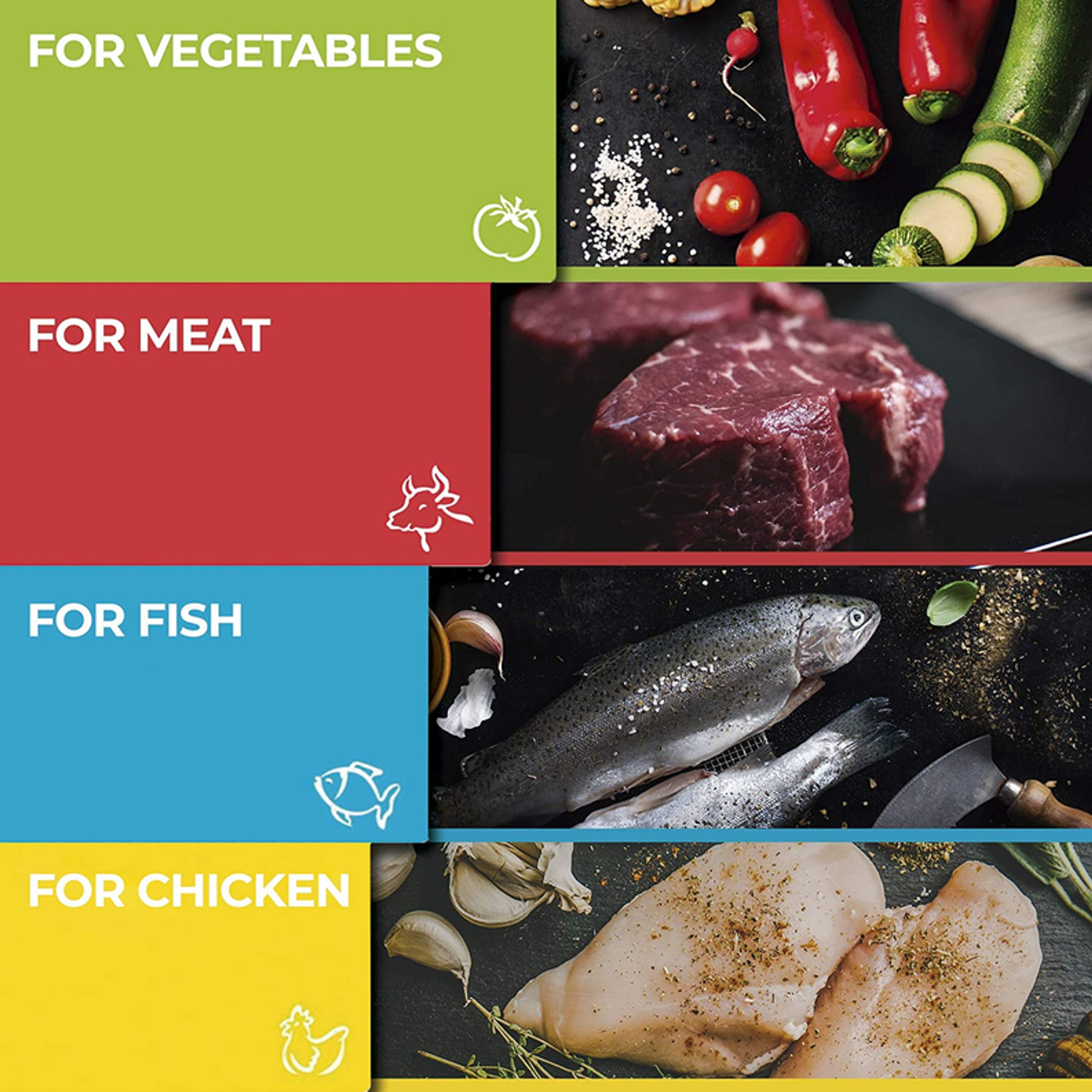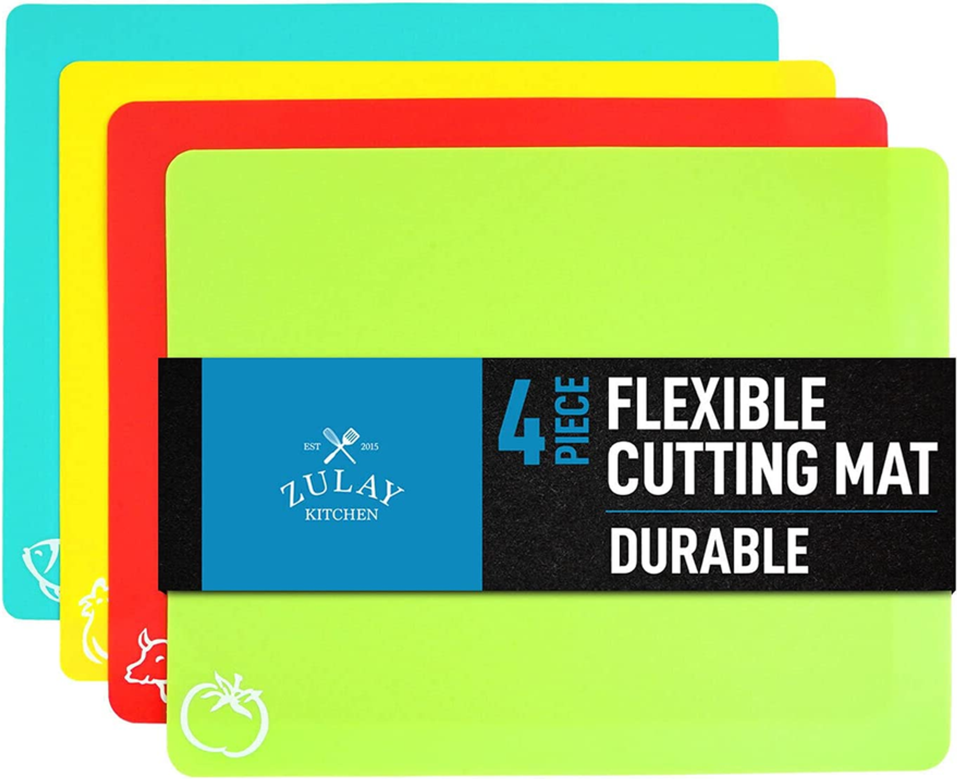 TOUGH ENOUGH FOR THE SHARPEST KNIVES ndash; Our flexible and foldable cutting boards for kitchen are made with a specific blend of plastic formulated to outlast anything in your kitchen. Each mat has a mesh grip back that won't slip. Very useful for cutting fruits to make juice. These mats / sheets wipe clean in a jiffy and retain their bright beautiful colors. The cutting board set will withstand the hardest cutting or chopping from your sharpest knife. AVOID CROSS CONTAMINATION ndash; Our colored thermoplastic material will aid in keeping your family safe from bacteria as poly propylene has antibacterial properties. The icons will help you use the right cutting board for raw fish beef chicken meat or vegetables AND the board itself will help you get rid of bacteria. You will not have to worry about cracks or breaks since it is not made out of glass. SET OF LARGE FLEXIBLE MATS (15 rdquo; x 12 rdquo; / 38.1cm x 30.5cm) ndash; Each mat has a special icon showing which one to use for fish beef chicken vegetables or produce bread and fruit. Don't settle for small or medium sized pads / boards. These long cutting mats are an excellent personalized gift for the chef in the family. The colorful designs will be sure to impress. The kit will really help anyone get into the groove of cooking! SAFE WAFFLE-BACK GRIP & EASY TO STORE ndash; Each mat sheet is BPA Free and has a semi-non-slip textured waffle backing which prevents slipping (for full non slip use place a towel or paper towel underneath the mat) and sliding so you don't cut yourself. These color coded mats can lay flat stand up or you can roll them up and use your drawer as a storage space for them. They are also heat resistant and dishwasher safe. FULL WARRANTY AND 100% MONEY BACK GUARANTEE ndash; We are sure you will love your new set of cutting mats! If you're not 100% satisfied don't hesitate to contact us. As a family owned company we care that every single one of our customers are happy and are always looking to do better. You have nothing to lose! Get your new set of mats today. Perfect for all your kitchen cutting and chopping needs You will find it so much easier to avoid cross contamination in your kitchen with each poly mat being color coded to a particular type of food. They also have special icons on each one designating which one to use for fish chicken meat and produce. Highest Quality These cutting mats are made with the highest quality BPA FREE food grade material board so they are safe to use while handling food directly. Kit is thick enough that chef quality sharp knives won't just cut right through them like most plastic cutting mats (.03125 inches thick). Industrial Grade The waffle crosshatched backing on the mats make them semi-non-slip for extra non slip place a paper towel underneath. Great for use on counter tops and tables. Aids in cutting foods into appropriate measurements. Health Advantages The mats feature a special anti-microbial surface made of nonporous mildew and mold growth resistant materials. Non toxic and eco friendly large and flexible sheets. Great for camping. With the 6 color coded mats you can avoid cross contamination. Health professionals suggest changing out your cutting mats every two years. Dishwasher Safe. For In Home or Professional Use Suitable for in home kitchens professional kitchens restaurants bars university kitchenette boats & campers etc. We Are Here To Help At Zulay Kitchen we are a small family owned business based in USA. We strive to make every single one of our customers happy. If you have any questions or concerns about your new thin cutting mat sheet set please feel free to ask. We always love to hear from our customers and get your feedback. Money Back Guarantee Our Money Back Guarantee: We believe in our product so much that if for any reason you are not fully satisfied just contact us and we will give you a full refund no questions asked.